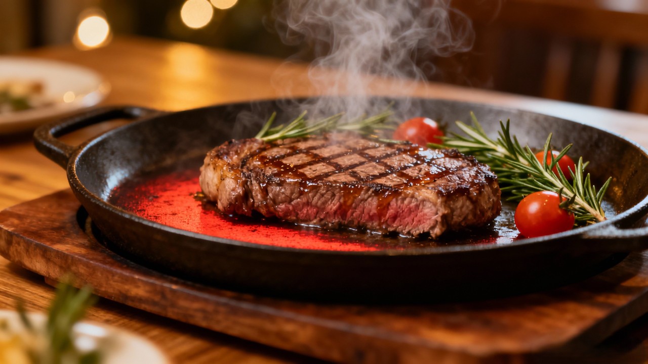 料理人が肉にアルコールをかけ、火をつけた次の瞬間。
